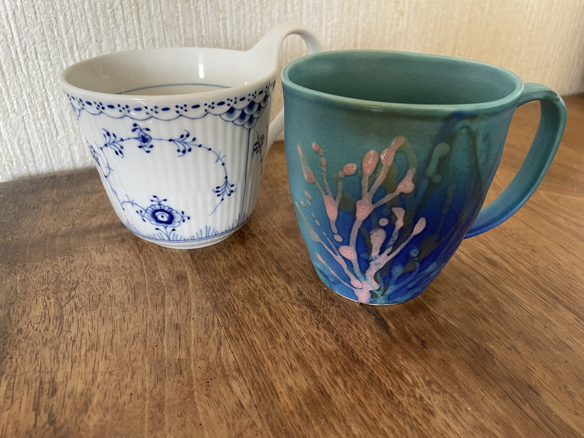 ↑これらは、私のお気に入りのマグカップです。毎日このカップでノンカフェインのコーヒーを飲んでいます。たったこれだけのことですが、心がほっとする時間を持てるので、私にとっては貴重な大切な時間です。